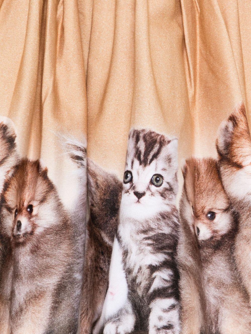 The beige Molo dress for girls with animal print is available on the RubinoKids.com online store. Made of 100% cotton, it features a beige color, a flared skirt, a ribbed bodice, an animal print, and a gathered waist. Available in various sizes, it is part of the Molo Fall/Winter 2025 collection and is available for 24-48 hour delivery in Italy.
