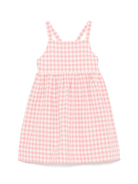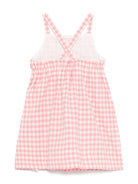 The Il Gufo pink checked dress for girls is available on the RubinoKids.com online store. Made of 100% cotton, it features a bubblegum pink color, an elasticated waistband, an embroidered logo on the front, and crossed shoulder straps at the back. Available in various sizes, it is part of the Il Gufo Spring/Summer 2025 collection and is available for immediate shipment with delivery within 24-48 hours in Italy.