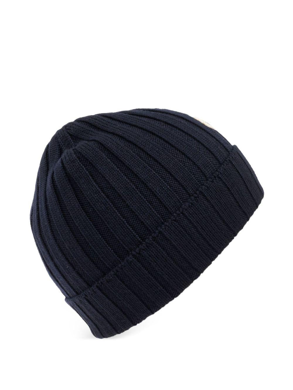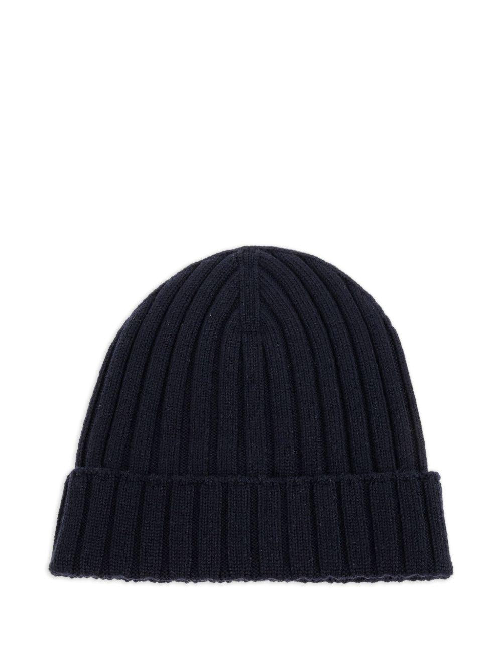 The Moncler Enfant baby hat in blue with logo patch is available on the RubinoKids.com online store. Made of 100% virgin wool, it features a navy blue color, a logo patch, and ribbed trim. Available in various sizes, it is part of the Moncler Enfant Fall/Winter 2025 collection and is available with 24-48 hour delivery in Italy.