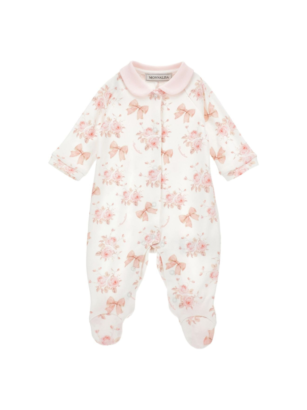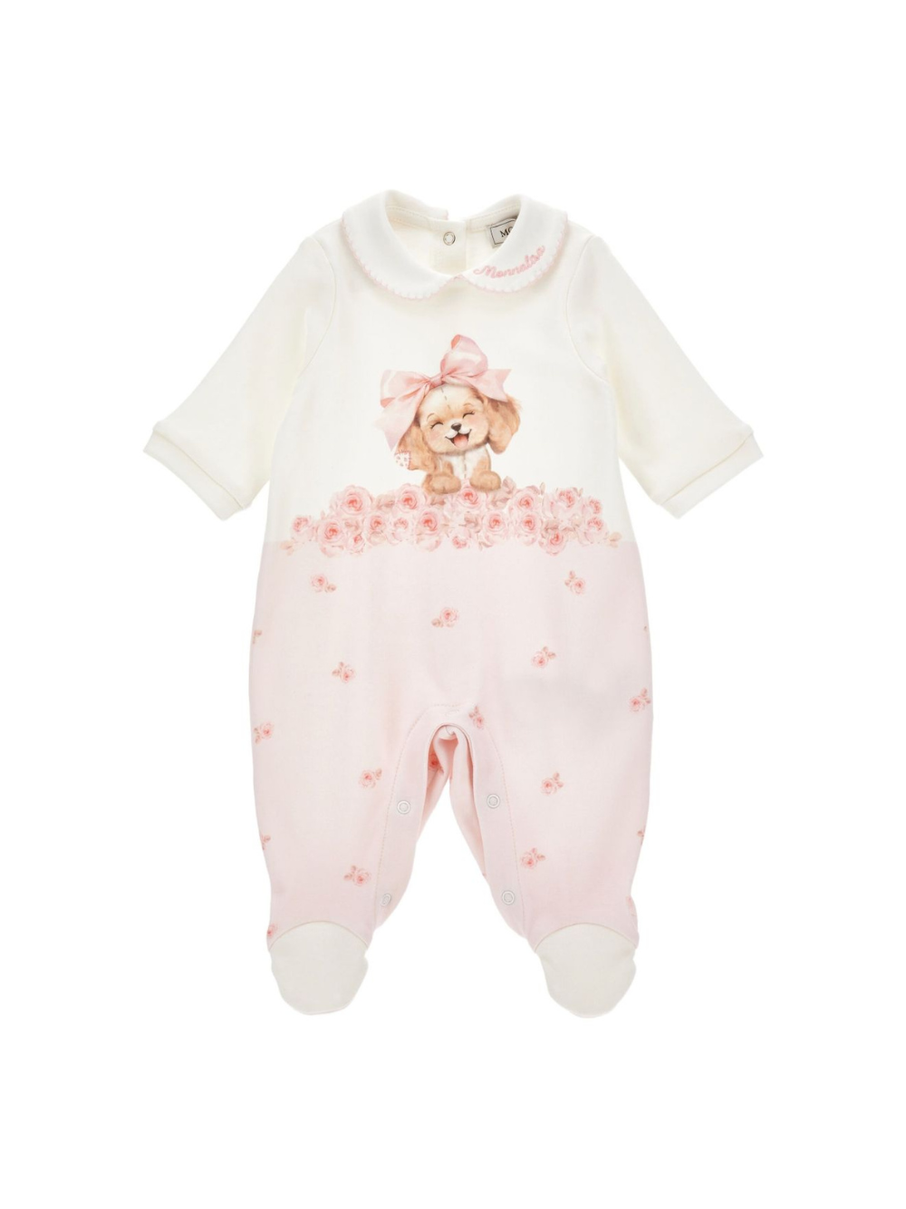 Tartine Et Chocolate white baby girl romper with pink embroidery