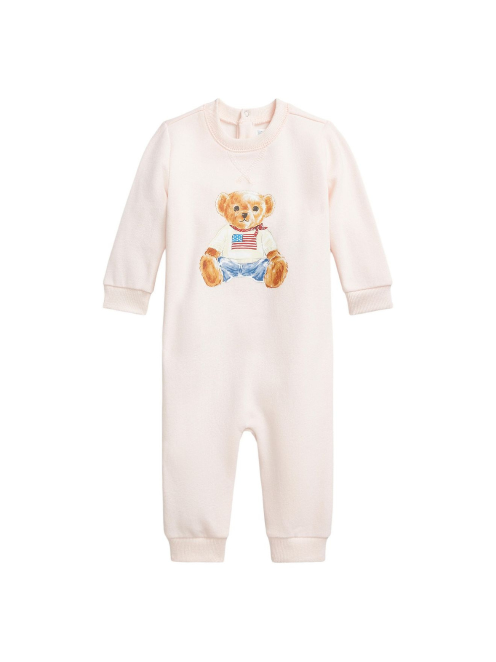 POLO RALPH LAUREN KIDS baby girl's pink onesie with Polo Bear print