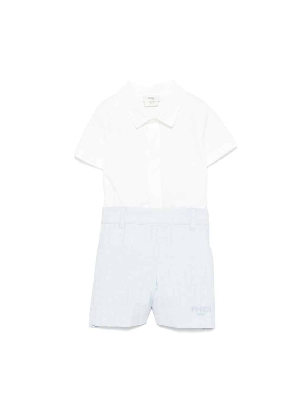 Fendi Kids white and light blue baby romper with embossed logo motif