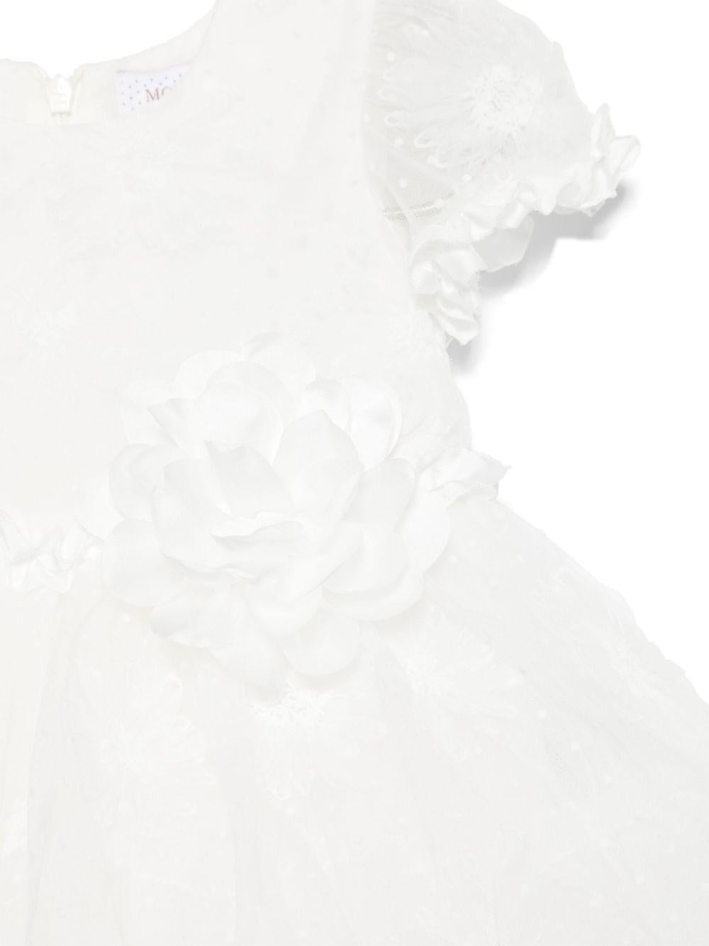 Monnalisa white point d'esprit dress for newborns with a long flared skirt