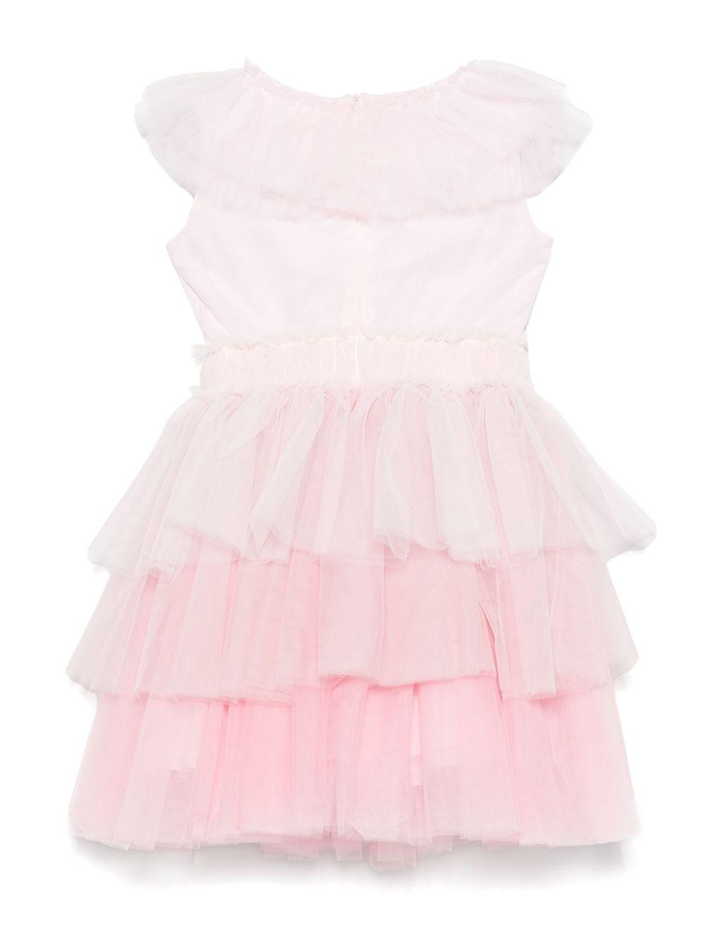 Self-Portrait Kids pink ruffled tulle dress with lace trim for girls