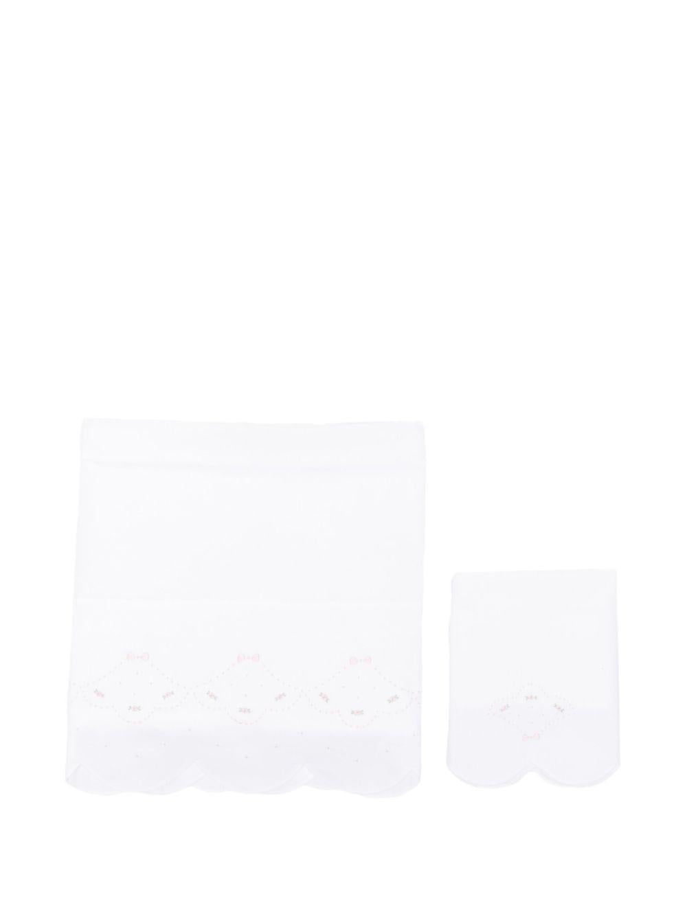 Mariella Ferrari white baby blanket with scalloped edge