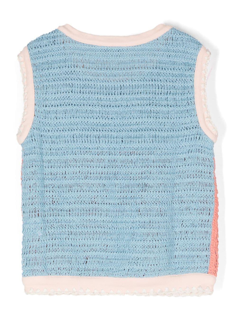 Il prodotto Stella McCartney Kids Maglione Farmyard è disponibile sullo store online RubinoKids.com. Realizzato in poliestere riciclato 100%. Il gilet presenta un colore rosa pesca/blu cielo, poliestere riciclato, lavorazione a uncinetto, rifinitura a coste, design con inserti color-block, ricamo Farmyard, girocollo, senza maniche, orlo curvo. Varie taglie a catalogo, appartiene alla collezione Stella McCartney Kids Autunno/Inverno 2024 ed è disponibile in pronta spedizione con consegna in 24/48h per l'Italia.