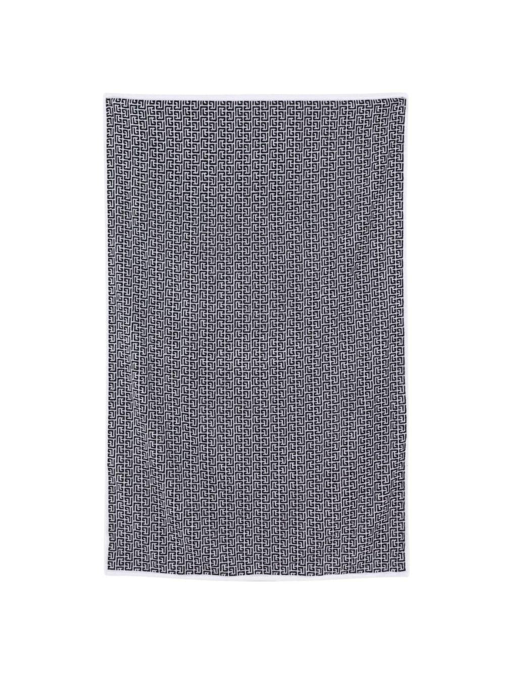 Telo mare per bambini Balmain Kids bianco e nero con stampa geometrica all-over