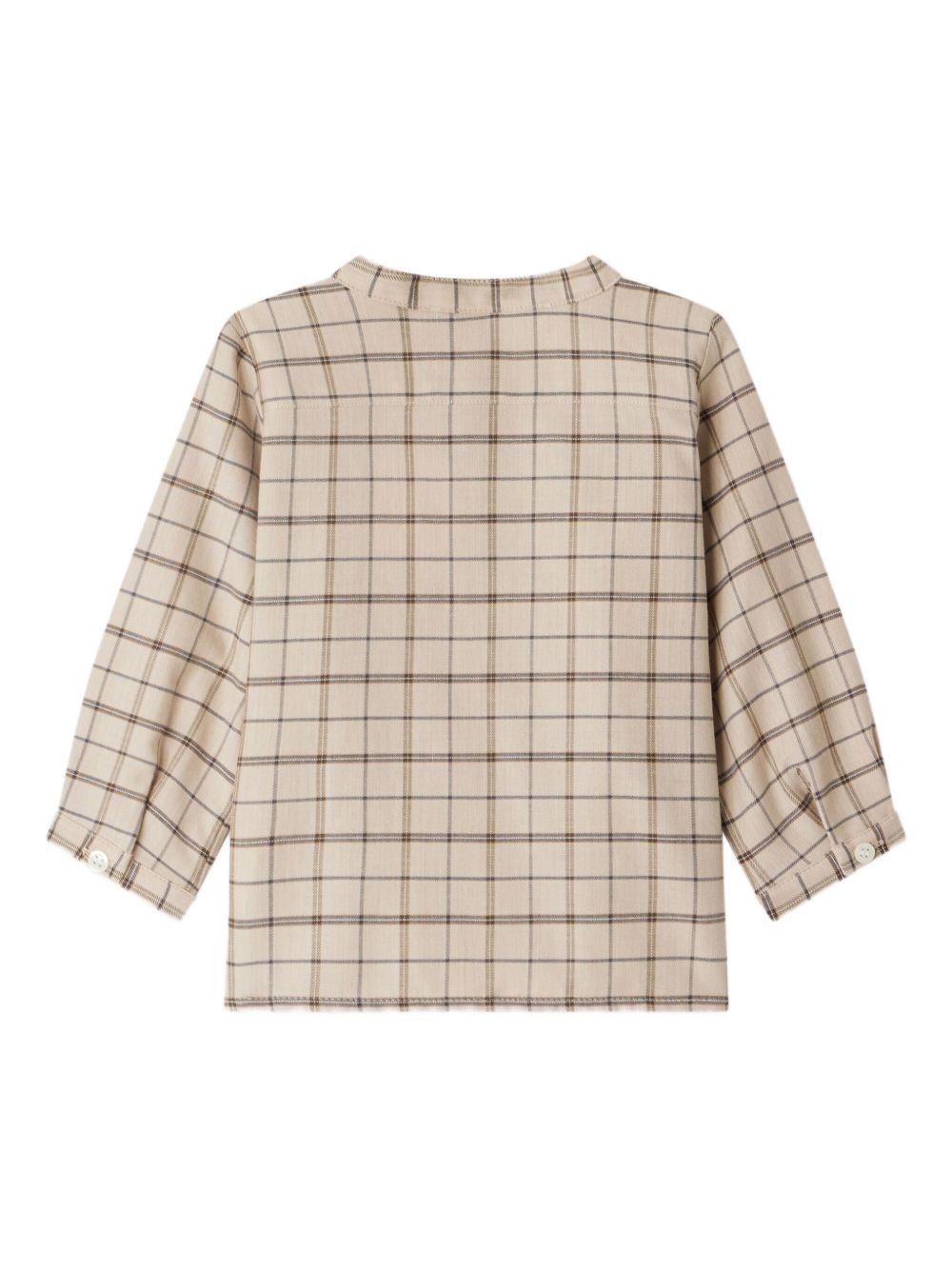 Bonpoint beige baby polo shirt with button placket and checked pattern