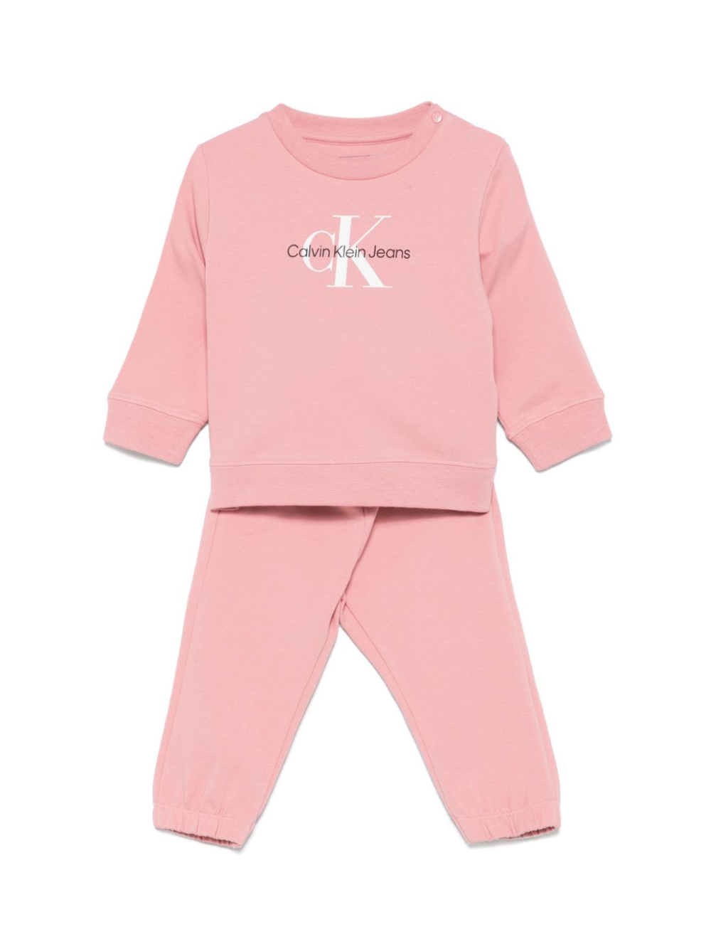 Calvin Klein Kids Pink Baby Girl Printed Tracksuit Set of Three with Button Closure