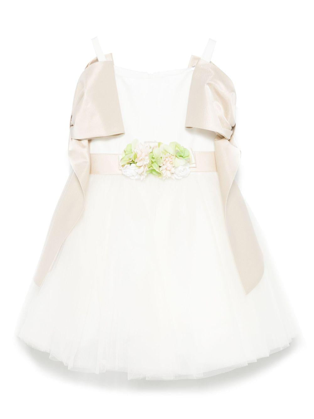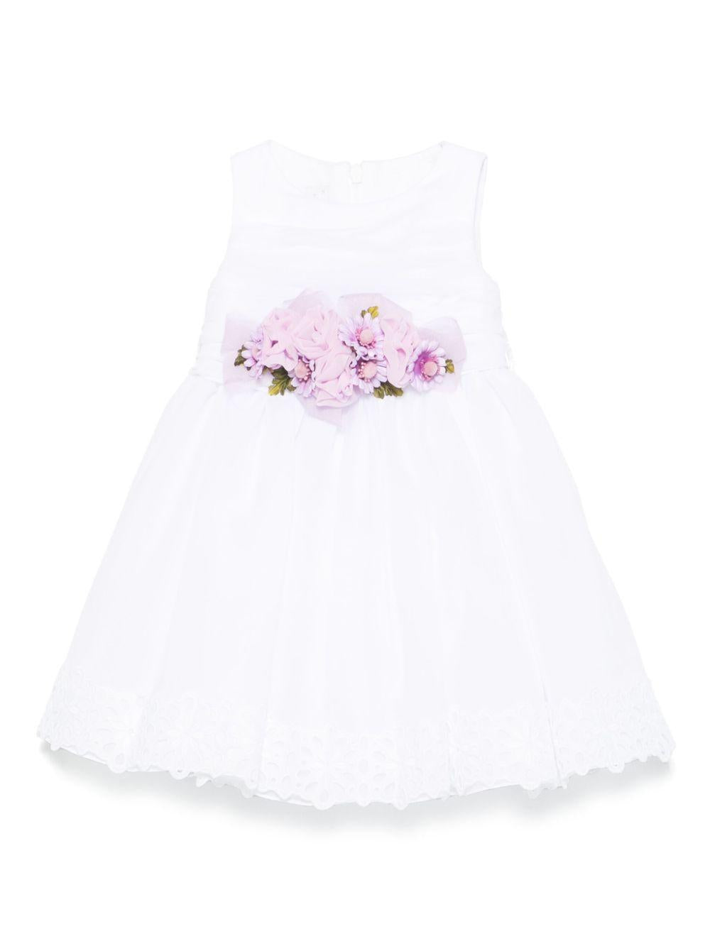 Colorichiari white baby girl dress with gathered detailing and floral applique
