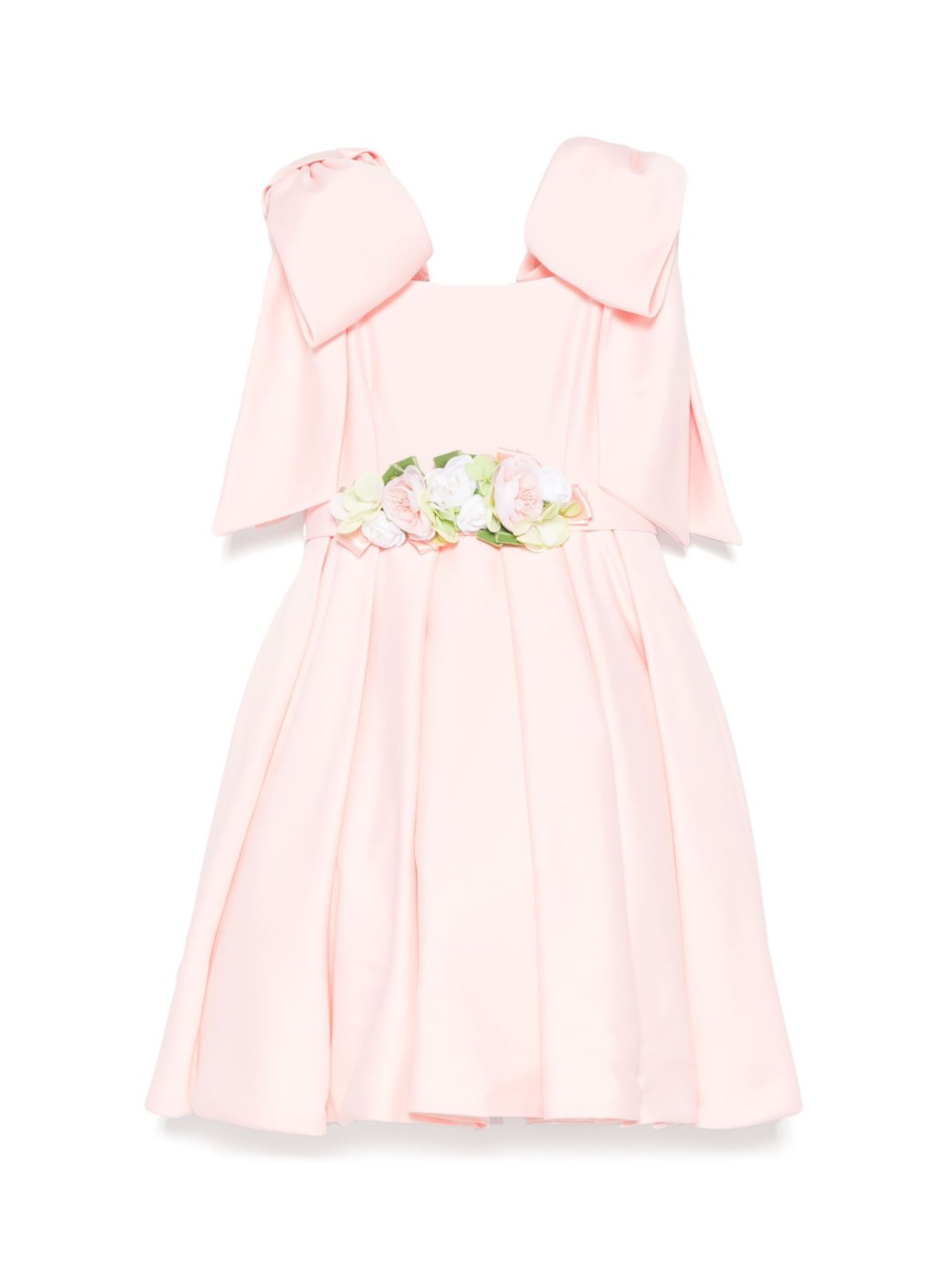 Colorichiari pink dress for girls with ruffles and bow and flower details