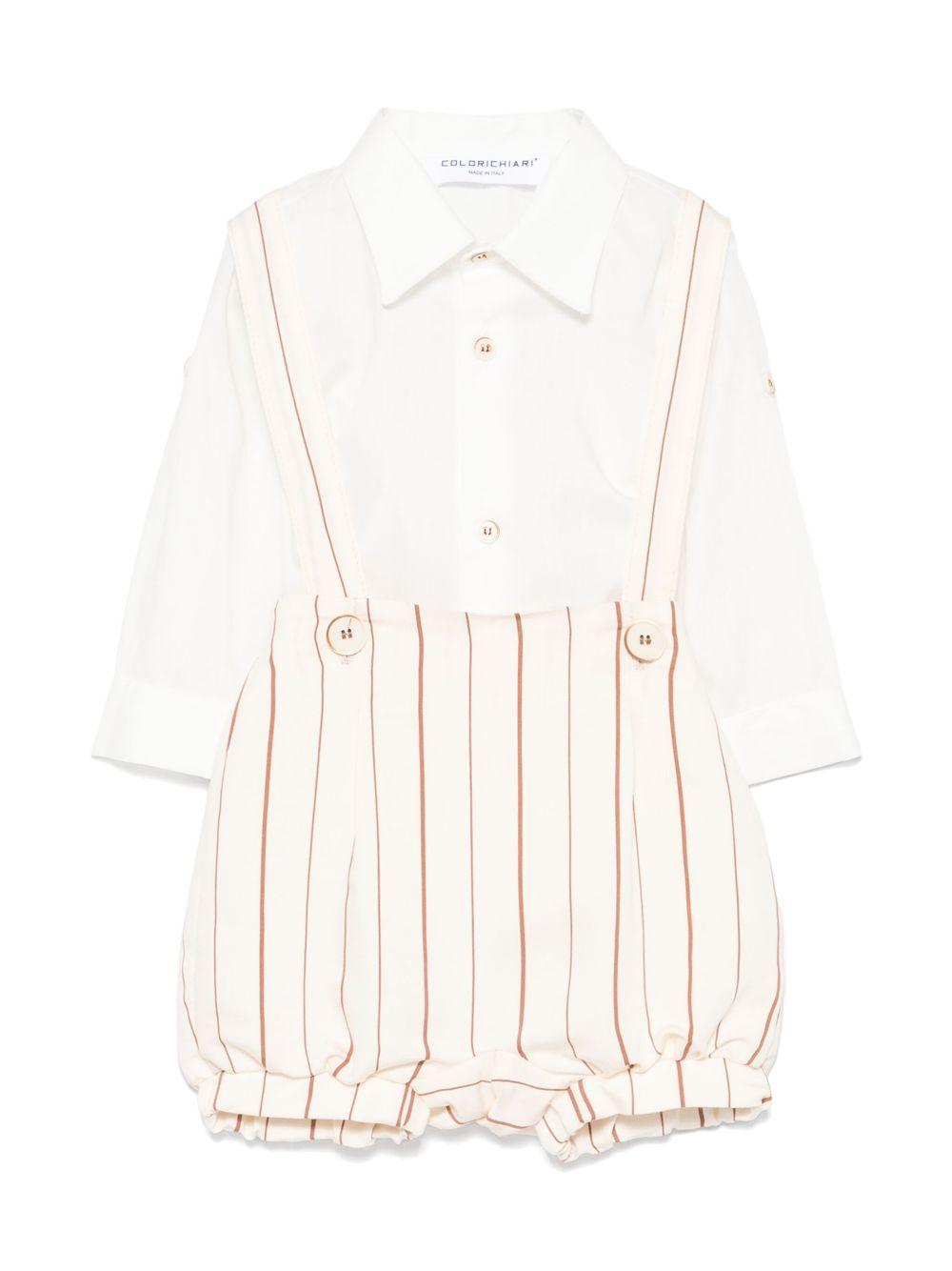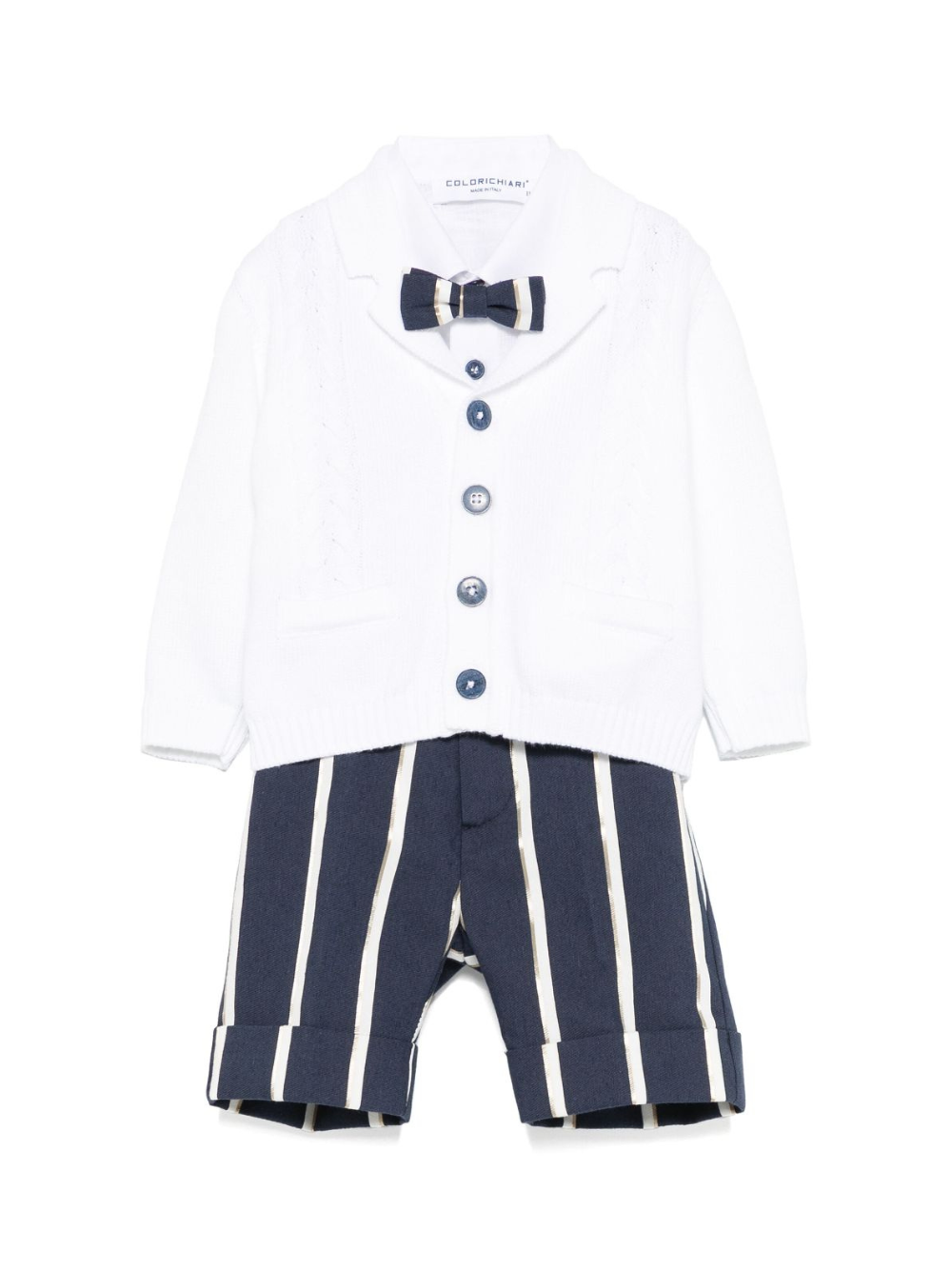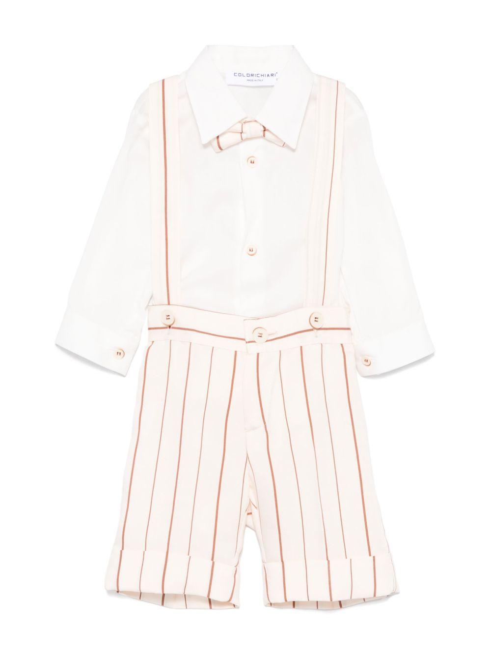 Colorichiari beige and light blue striped blazer, shirt and shorts set for newborns