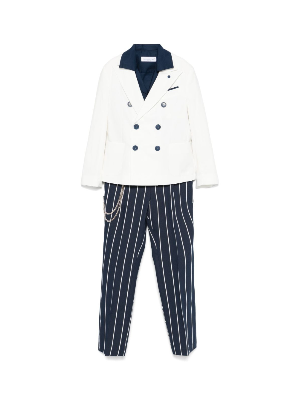 Colorichiari three-piece suit for boys in blue pinstripe with double-breasted closure