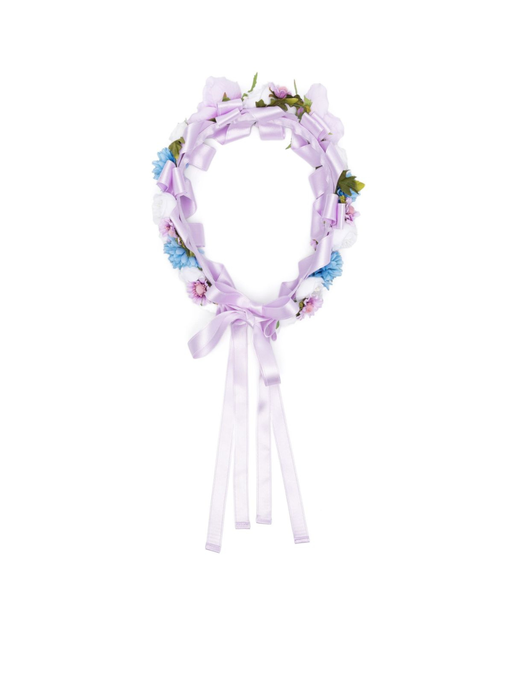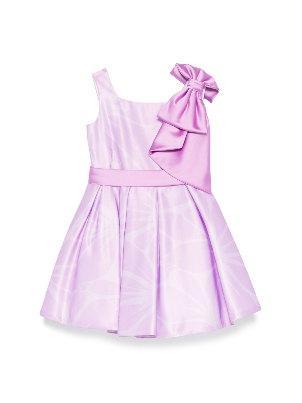 Colorichiari purple dress for girls with graphic print and oversized bow detail