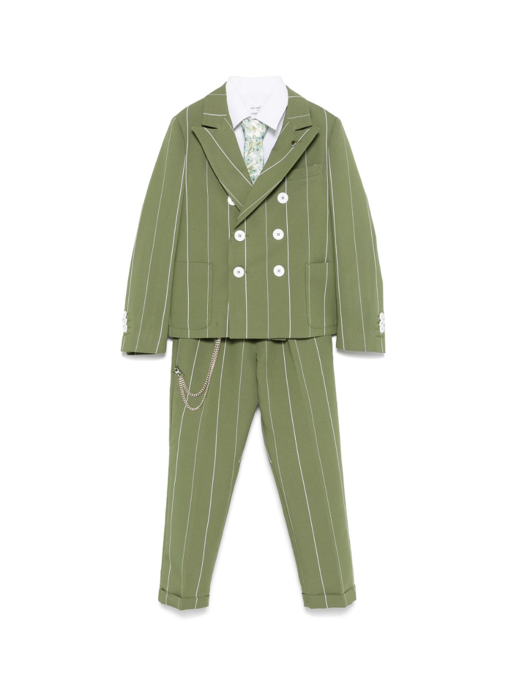 Colorichiari beige pinstriped double-breasted three-piece suit for boys