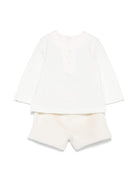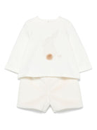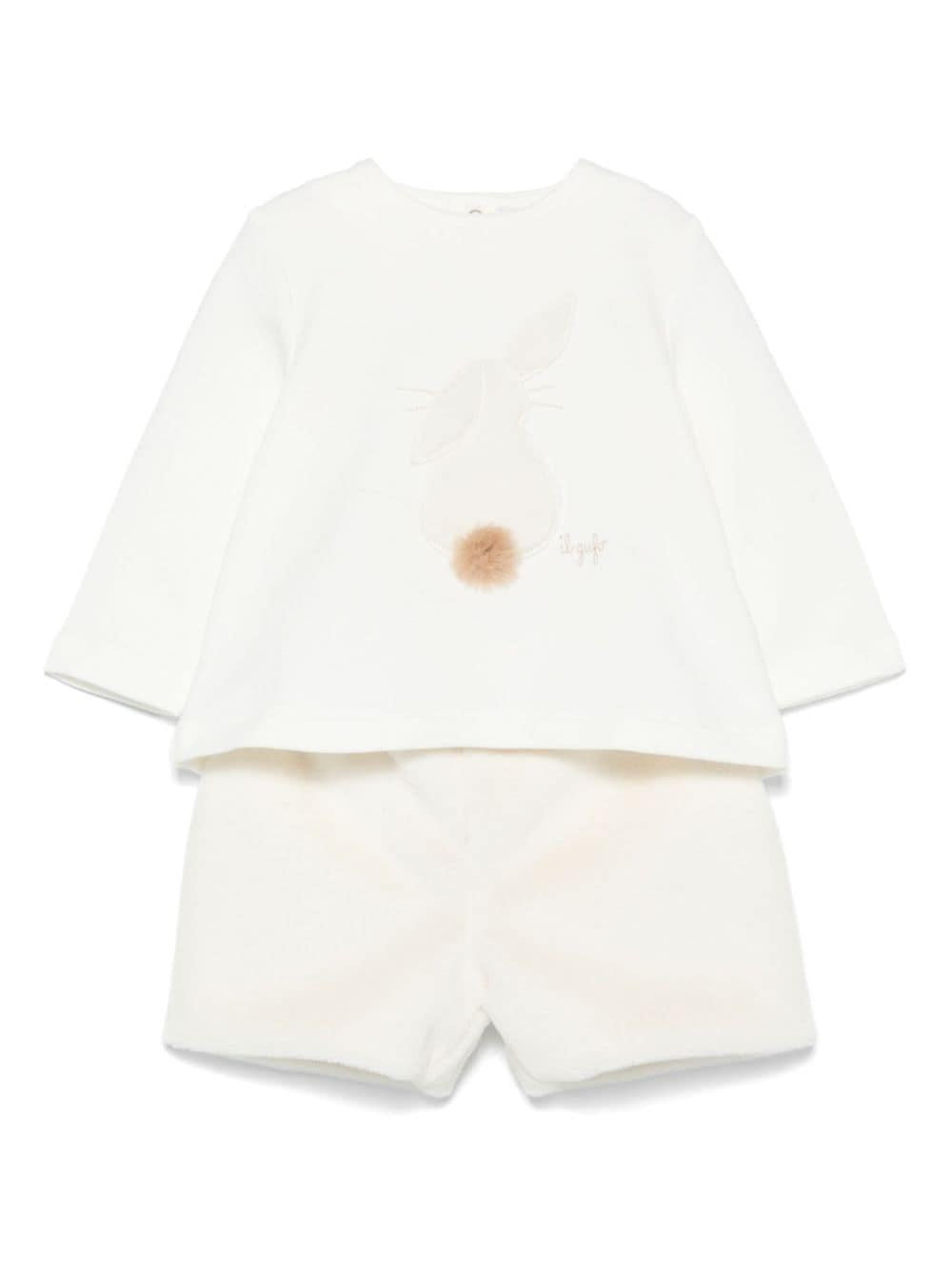 White Il Gufo baby girl's T-shirt and shorts with rabbit print and motif on the front