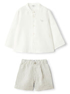 Gray striped Il Gufo baby boy shorts and shirt