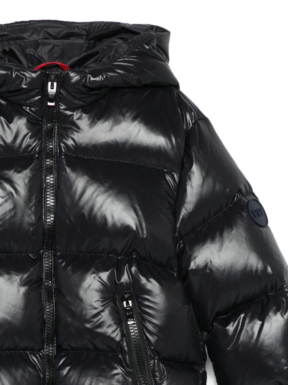 The Fay Kids black hooded down jacket for boys is available on the RubinoKids.com online store. Made of 100% polyamide, it features a black hood, zip closure, welt pockets, and a straight hem. Available in various sizes, it is part of the Fay Kids Fall/Winter 2025 collection and is available for 24-48 hour delivery in Italy.