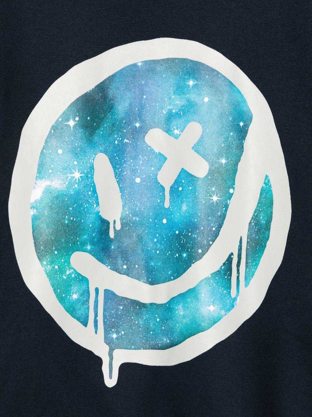 The Molo blue sweatshirt for boys with smiley face print is available on the RubinoKids.com online store. Made of 80% cotton, 20% polyester. The product is blue in color,