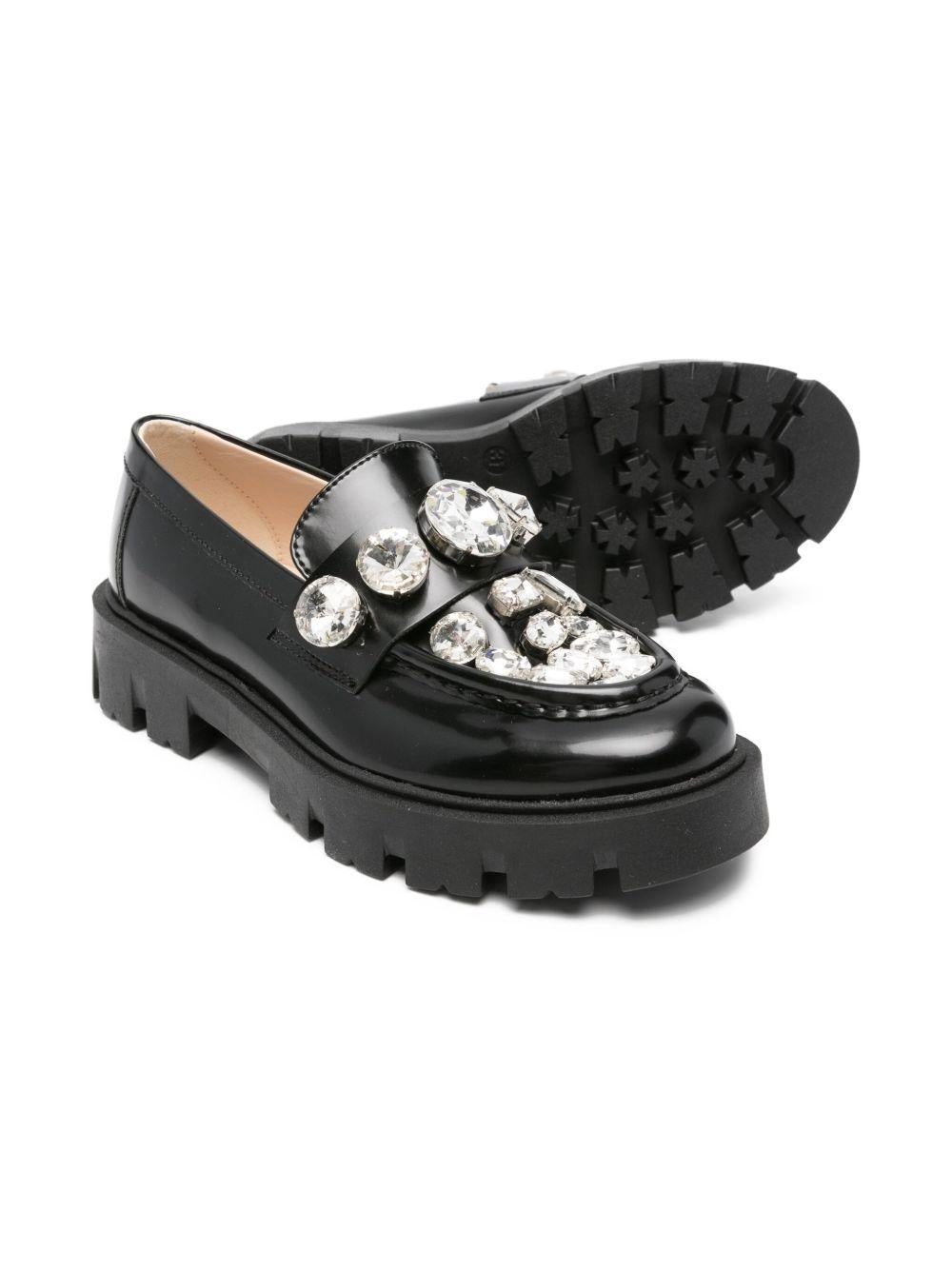 Black Florens moccasins for girls with crystal decorations