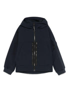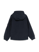 The CP Company Kids blue jacket with applique is available on the RubinoKids.com online store. Made of 100% polyester, it features a navy blue color, a front zip closure, front zip pockets, and two side zip pockets. Available in various sizes, it is part of the CP Company Kids Spring/Summer 2025 collection and is available for immediate shipment with delivery within 24-48 hours in Italy.