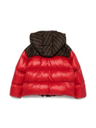 Fendi Kids red hooded jacket with FF monogram logo for girls
