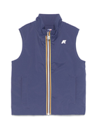 The K Way Kids P. Valen sleeveless jacket for boys in blue with windbreaker is available on the RubinoKids.com online store. Made of 100% polyurethane, 95% nylon, 5% spandex/elastane. The product features a front zip closure, is waterproof, and windproof. This size is part of the K Way Kids Spring/Summer 2025 collection and is available for immediate shipment with delivery within 24-48 hours in Italy.