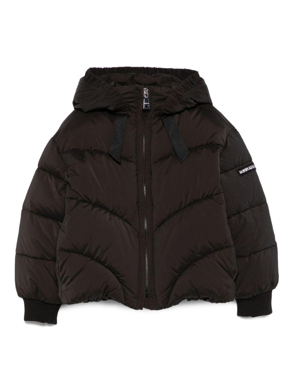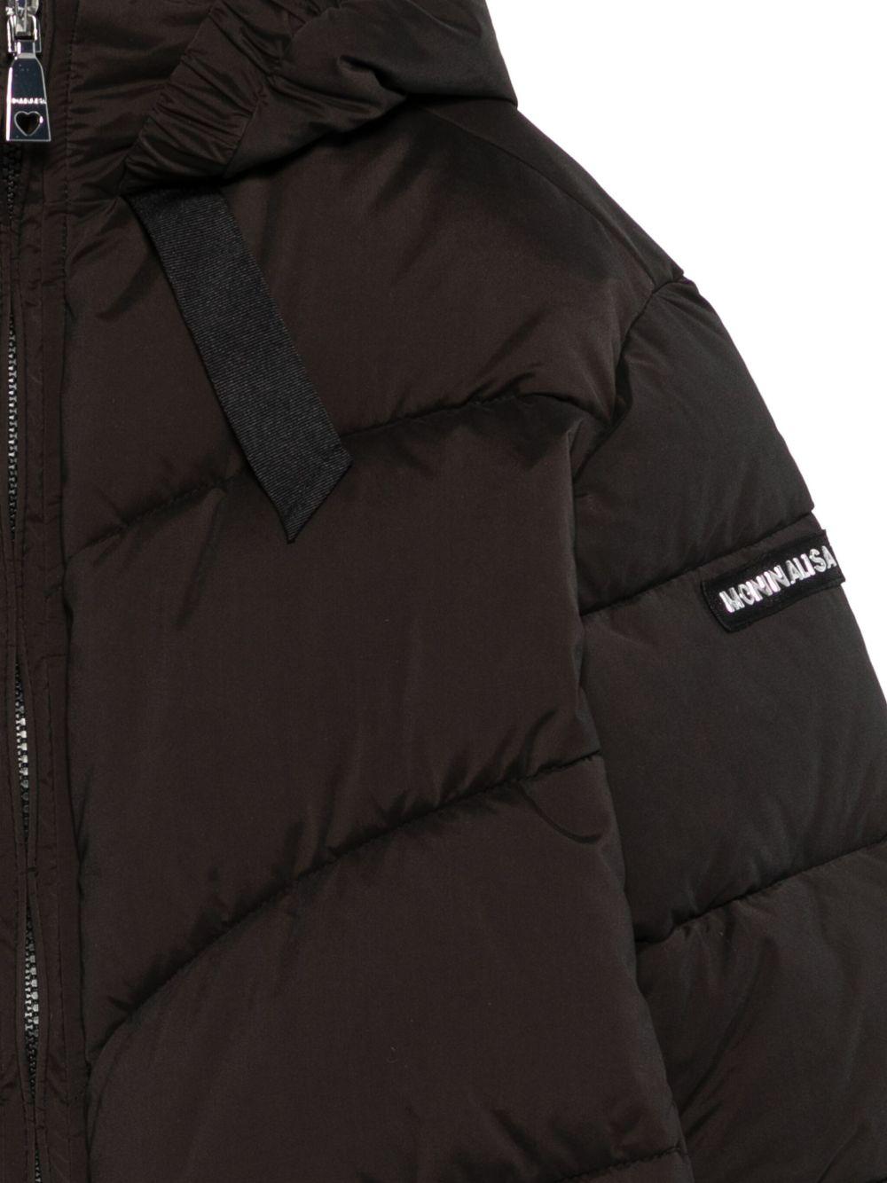 The Monnalisa black quilted jacket with hood for girls is available on the RubinoKids.com online store. Made of 90% polyester, 10% polyamide, it features a black quilted design, a hood, a scoop neck, a zip closure, long sleeves, and a logo detail. Available in various sizes, it is part of the Monnalisa Fall/Winter 2025 collection and is available for 24-48 hour delivery in Italy.