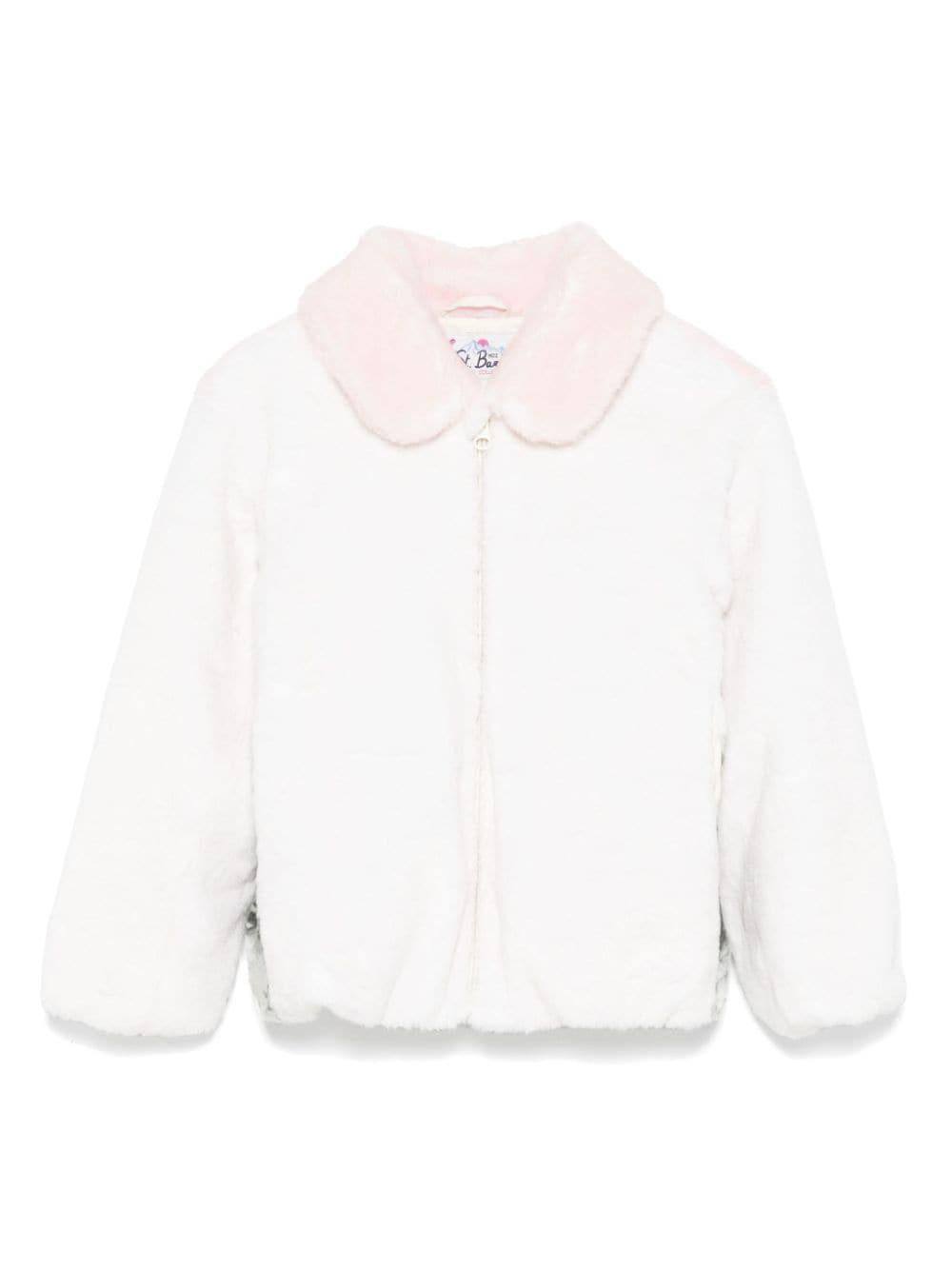 MSGM Kids white quilted down jacket for girls with quilted high collar
