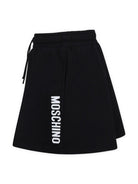 The Moschino Kids black flared skirt with logo for girls is available on the RubinoKids.com online store. Made from 100% cotton, it features an elasticated drawstring waist and a flared cut. This size is from the Moschino Kids Spring/Summer 2025 collection and is available for immediate shipment with delivery within 24-48 hours in Italy.