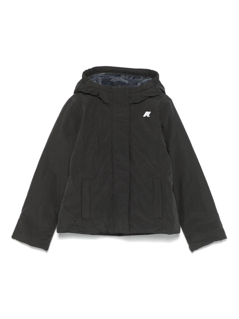 P. Lily jacket for girls by K-Way Kids in black with embossed logo detail