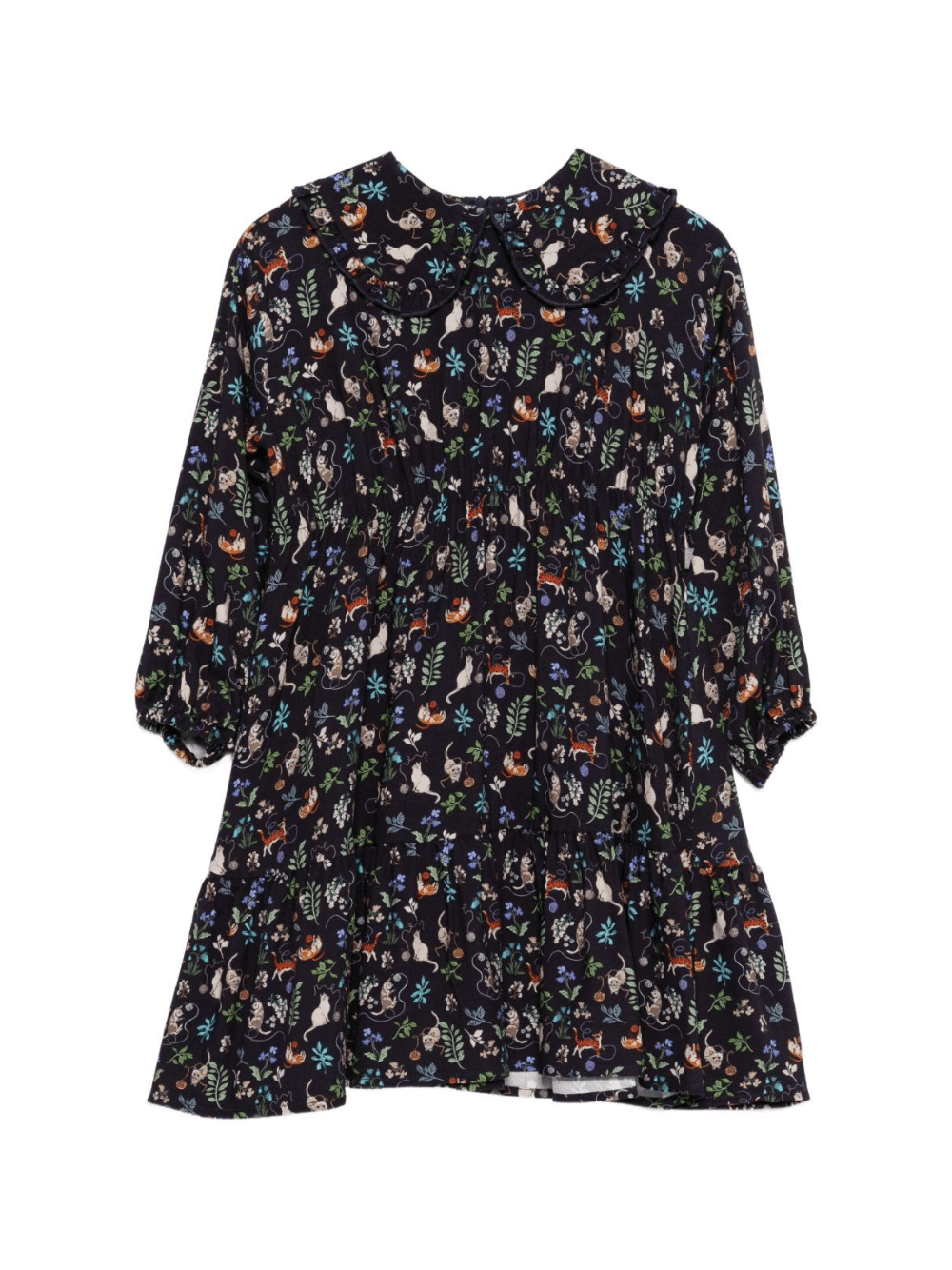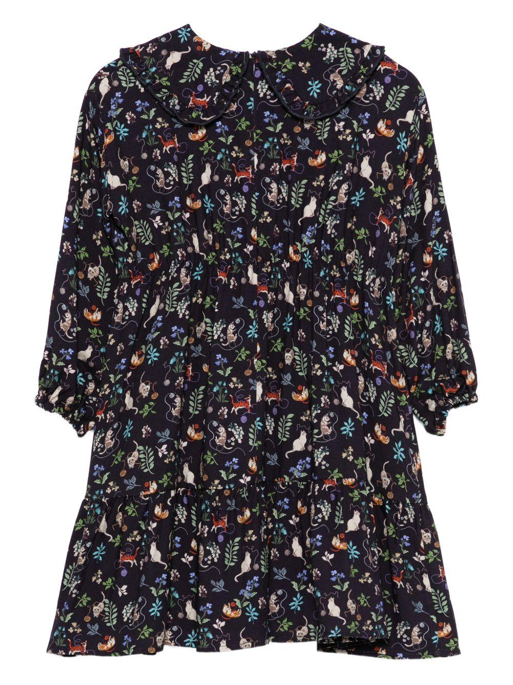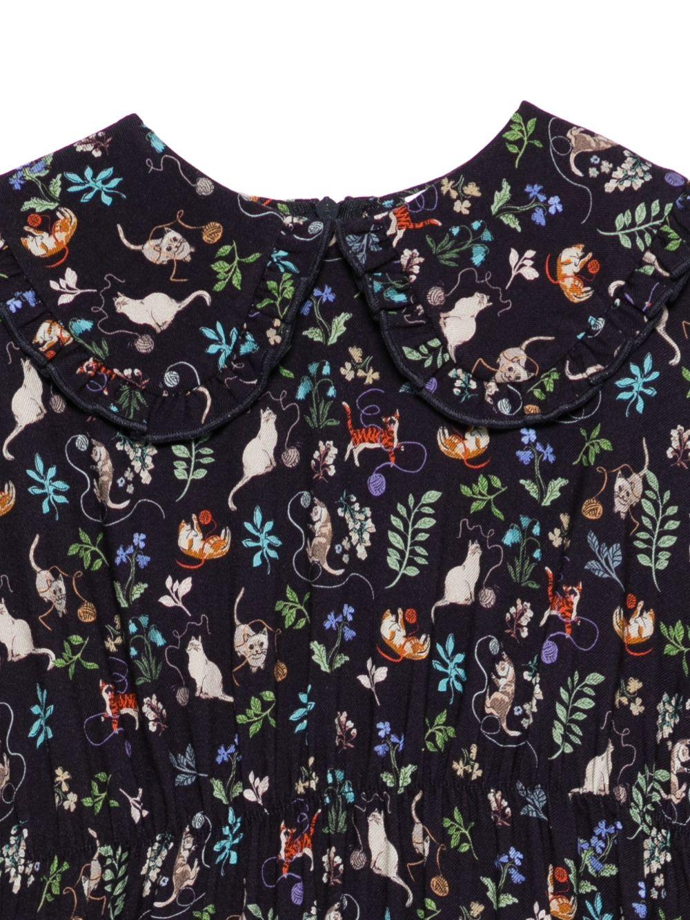 The Il Gufo blue dress for girls with cat print is available on the RubinoKids.com online store. Made of 100% viscose, it features a blue color, long sleeves, a crew neck, a gathered skirt, and a cat print. Available in various sizes, it is part of the Il Gufo Fall/Winter 2025 collection and is available for 24-48 hour delivery in Italy.