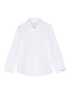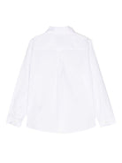 The Il Gufo white embroidered shirt for girls with a classic collar is available on the RubinoKids.com online store. Made of 100% cotton, the shirt features a black and white cotton blend, a poplin weave, an embroidered logo on the cuff, a classic collar, a concealed front button placket, long sleeves, buttoned cuffs, and a curved hem. Available in various sizes, it is part of the Il Gufo Fall/Winter 2024 collection and is available for immediate shipment with delivery within 24-48 hours in Italy.