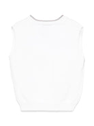 The Il Gufo white organic cotton baby tank top is available on the RubinoKids.com online store. Made of 100% cotton, it features a white V-neck, sleeveless design, and a ribbed trim. Available in various sizes, it is part of the Il Gufo Spring/Summer 2025 collection and is available for immediate shipment with delivery within 24-48 hours in Italy.