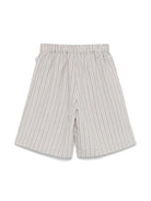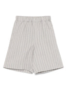 The Il Gufo boys' gray shorts with vertical stripes are available on the RubinoKids.com online store. Made of 90% viscose, 10% polyester, they feature a light gray color, an elastic waistband, and a mini logo tag. Available in various sizes, they are part of the Il Gufo Spring/Summer 2025 collection and are available for immediate shipment with delivery within 24-48 hours in Italy.