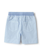 The Il Gufo baby boy's blue drawstring shorts are available on the RubinoKids.com online store. Made from 100% cotton, they feature a light blue color, an elasticated drawstring waist, two side welt pockets, two back patch pockets, and a mini logo tag. Available in various sizes, they are part of the Il Gufo Spring/Summer 2025 collection and are available for immediate shipment with delivery within 24-48 hours in Italy.