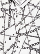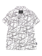 The John Richmond Junior white printed shirt for boys is available on the RubinoKids.com online store. Made from 100% cotton, it features a white button-up front, a Cuban collar, short sleeves, and a straight hem. Available in various sizes, it is part of the John Richmond Junior Spring/Summer 2025 collection and is available for immediate shipment with delivery within 24-48 hours in Italy.