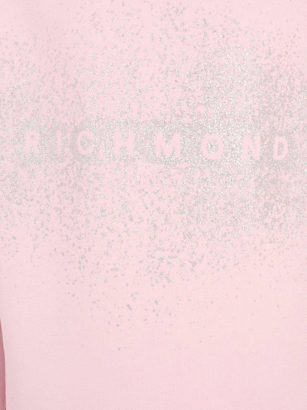 The John Richmond Junior pink tracksuit set for girls with glitter logo is available on the RubinoKids.com online store. Made of 86% cotton, 14% polyester, it features a pink color, glitter logo, long sleeves, a round neck, an elastic waistband, and rolled hems. Available in various sizes, it is part of the John Richmond Junior Fall/Winter 2025 collection and is available for 24-48 hour delivery in Italy.