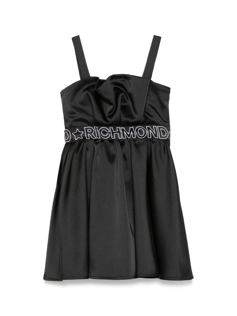John Richmond Junior girls' black dress with logo band and ruffled detail.