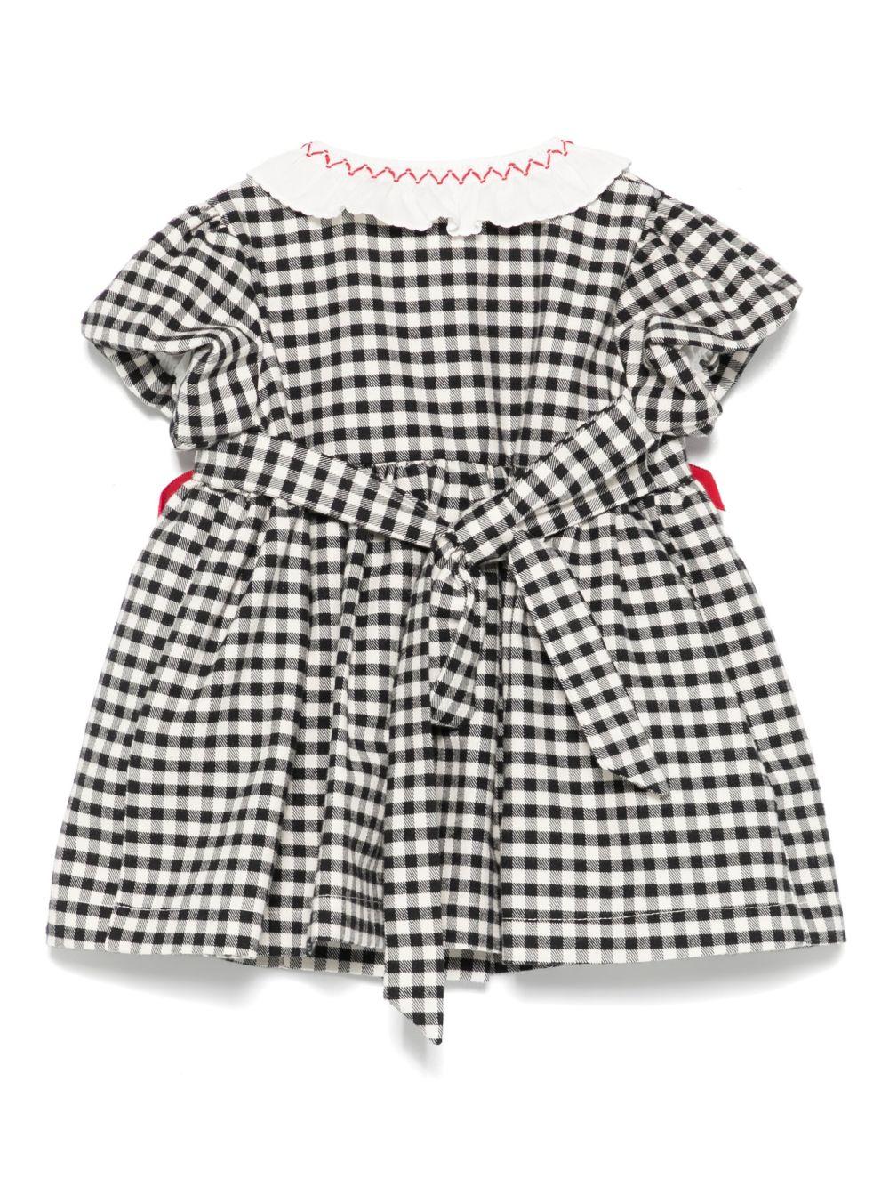 Checked pattern, short sleeves, Peter Pan collar, red ribbon, button-up front belt. Available in various sizes, it's part of the La Stupenderia Fall/Winter 2025 collection and is available for 24-48 hour delivery in Italy.