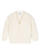 The Il Gufo white ribbed cardigan for babies is available on the online store RubinoKids.com. Made from 100% cotton, it features a white, ribbed cotton knit, a ribbed V-neck, a front button closure, long sleeves, a ribbed hem and cuffs, and a straight hem. Available in various sizes, it is part of the Il Gufo Spring/Summer 2025 collection and is available for immediate shipment with delivery within 24-48 hours in Italy.