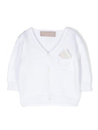 The La Stupenderia Cardigan with Pocket is available on the online store RubinoKids.com. Made of 100% cotton, it features a knitted design, a V-neck, a chest pocket, a scarf detail in the pocket, long sleeves, a ribbed hem and cuffs, and a front button closure. Available in various sizes, it is part of the La Stupenderia Spring/Summer 2024 collection and is available for immediate shipment with delivery within 24-48 hours in Italy.