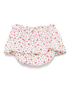 The Mariella Ferrari white floral skirt for baby girls is available on the RubinoKids.com online store. Made of 100% cotton, it features a white color, an elastic waistband, matching shorts, and ruffled details. Available in various sizes, it is part of the Mariella Ferrari Spring/Summer 2025 collection and is available for immediate shipment with delivery within 24-48 hours in Italy.