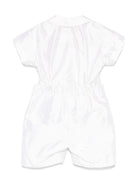The Mariella Ferrari white silk shirt and shorts set for babies is available on the RubinoKids.com online store. Made of 100% cotton, it features a white double-breasted button closure, an elasticated waistband at the back, a round collar, and short sleeves. Available in various sizes, it is part of the Mariella Ferrari Spring/Summer 2025 collection and is available for immediate shipment with delivery within 24-48 hours in Italy.