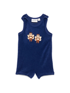 The Mini Rodini baby girl's blue onesie with embroidery and a round neck is available on the RubinoKids.com online store. Made from 100% cotton, it features a navy blue color, snap button closure, a round neck, and sleeveless styling. Available in various sizes, it is part of the Mini Rodini Fall/Winter 2025 collection and is available for immediate shipment with delivery within 24-48 hours in Italy.