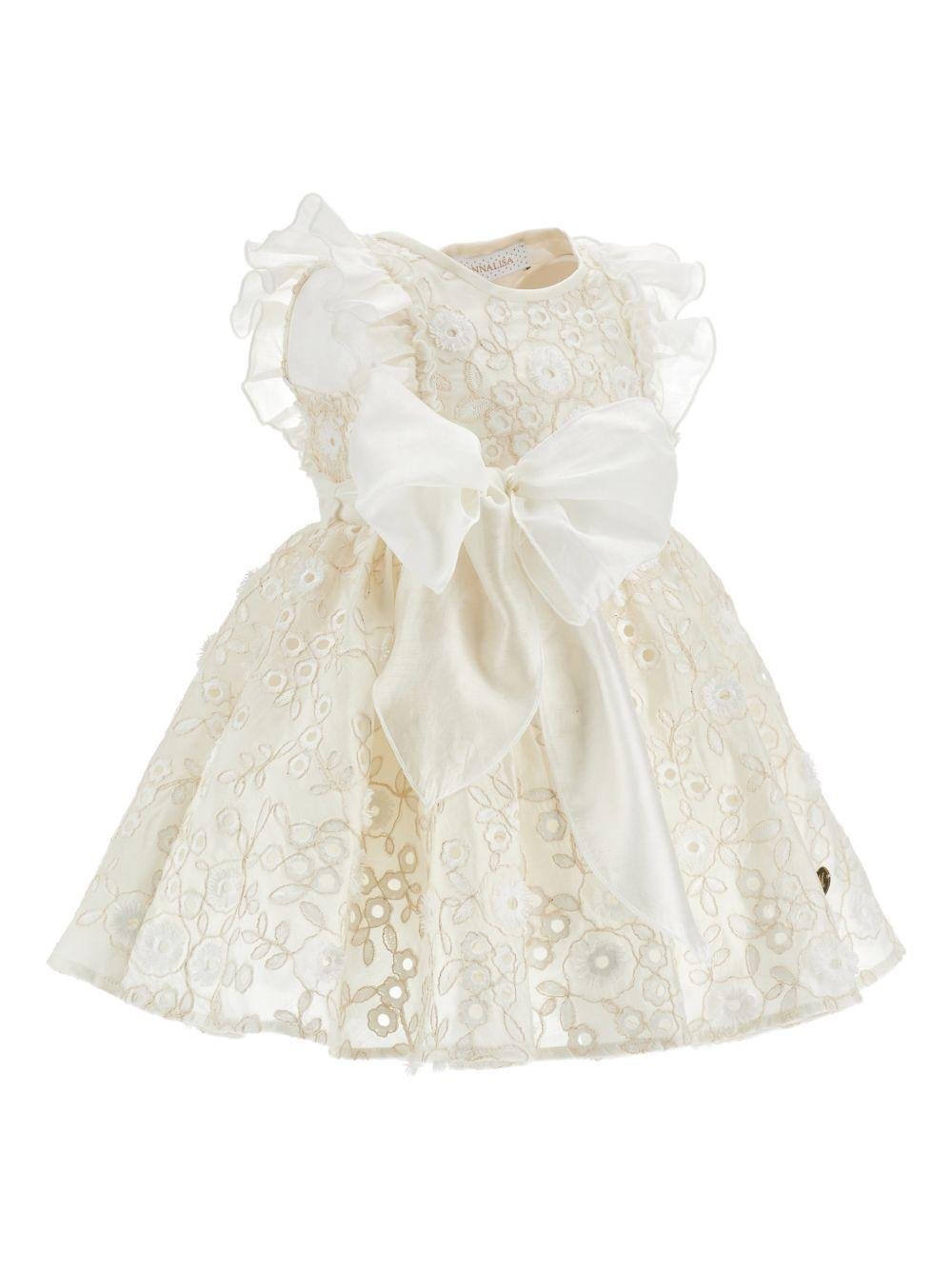 Abito per neonata Monnalisa bianco con dettaglio fiocco sul davanti