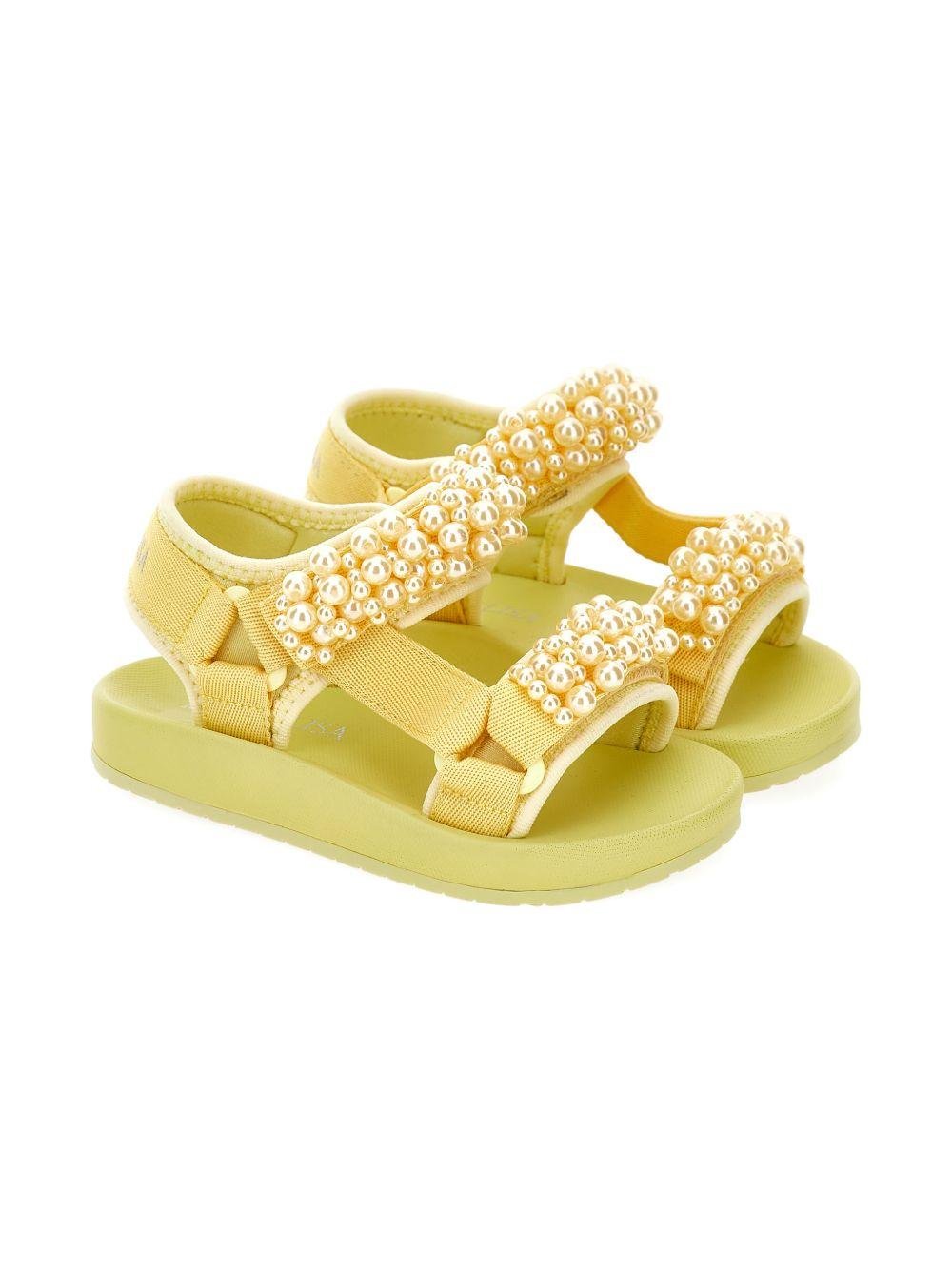 Sandali per bambina Monnalisa gialli con applicazioni a perline