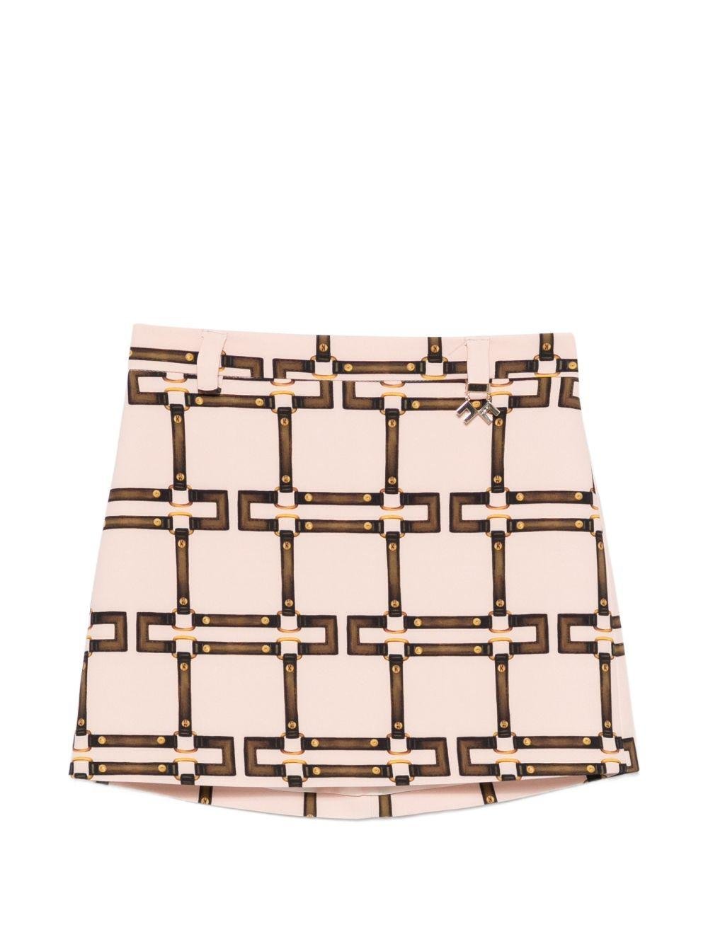 Il prodotto Gonna per bambina Elisabetta Franchi La Mia Bambina rosachiaro con fibbia è disponibile sullo store online RubinoKids.com. Realizzato in poliestere 95%, spandex/elastam 5%. Il prodotto presenta un colore rosa chiaro, stampa con fibbia, dettaglio con ciondolo, lunghezza corta, vestibilità regolare, orlo dritto. Varie taglie a catalogo, appartiene alla collezione Elisabetta Franchi La Mia Bambina Primavera/Estate 2026 ed è disponibile con consegna in 24/48h per l'Italia.