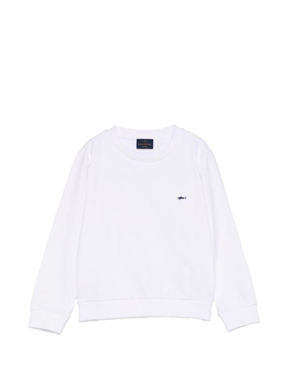 Felpa per bambino Paul & Shark Kids bianca con ricamo squalo sul davanti