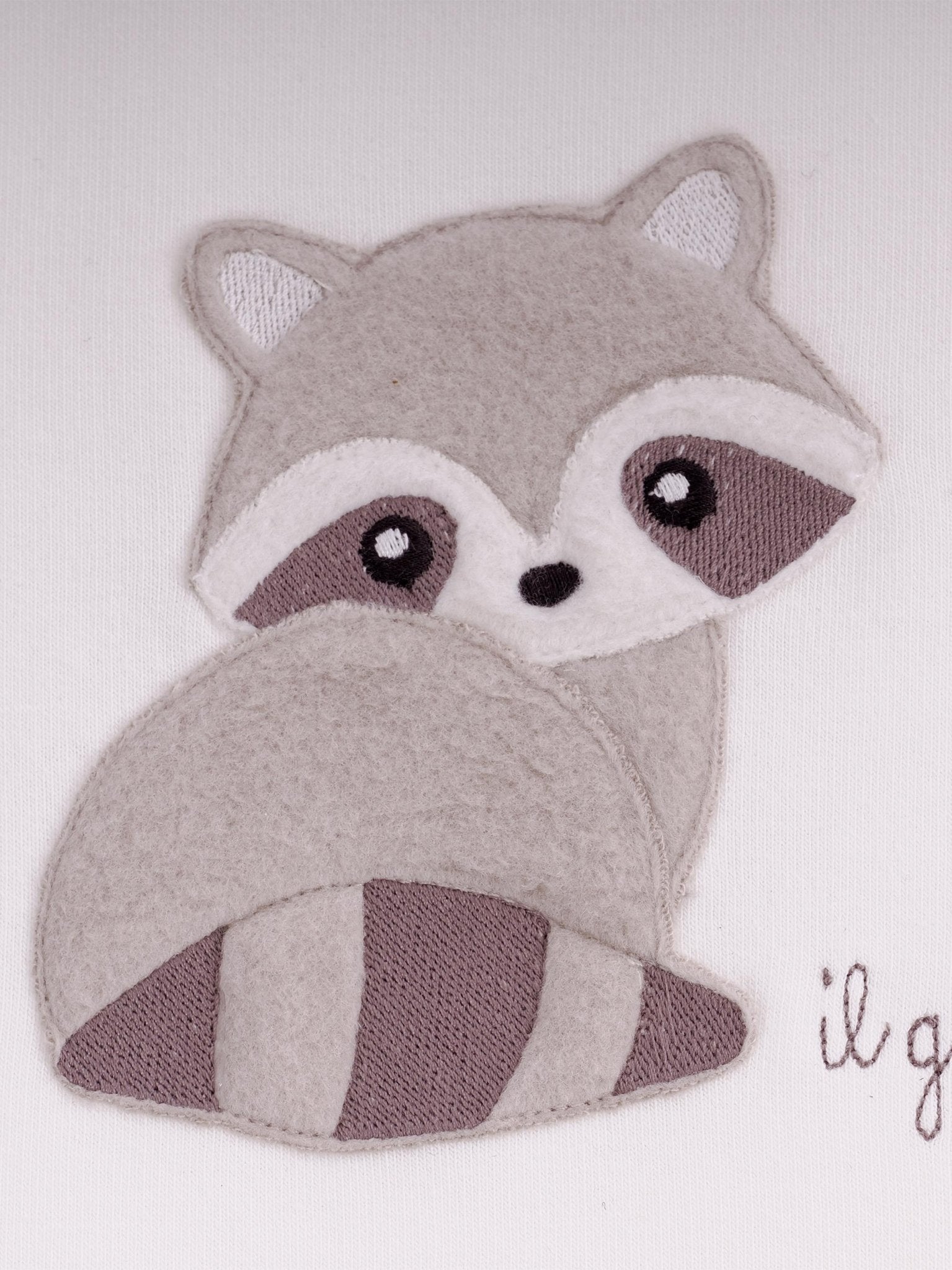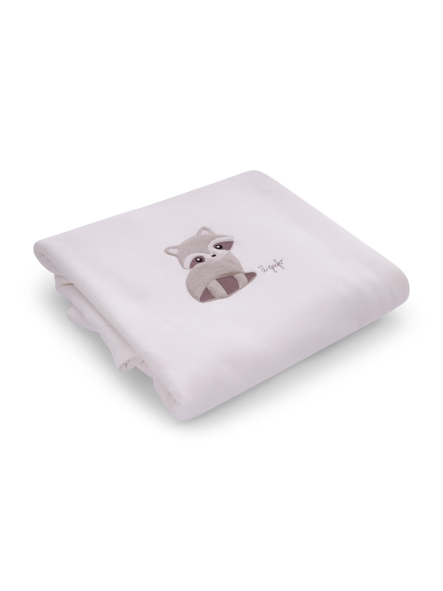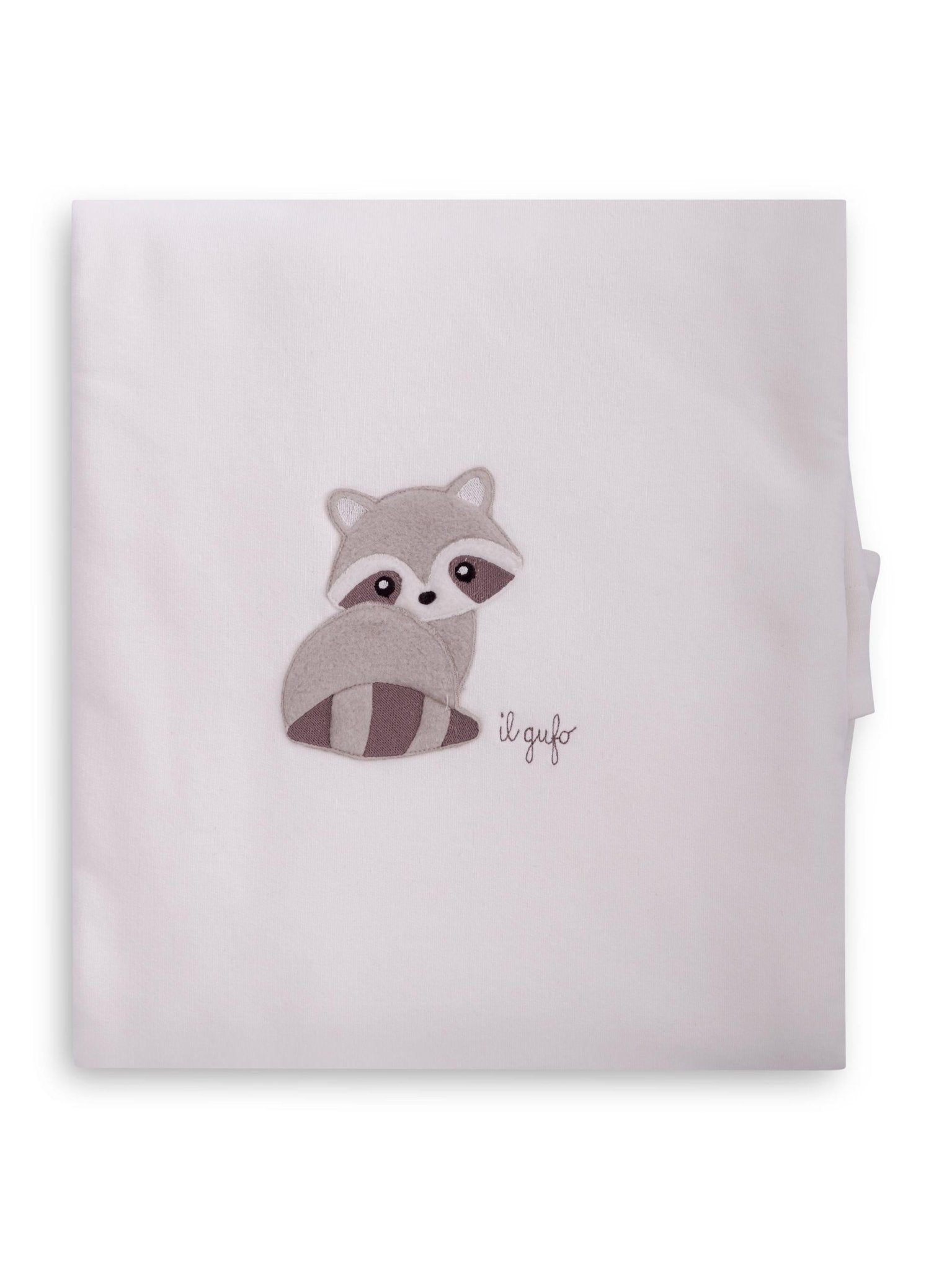 Coperta per neonati Il Gufo bianca con ricamo procione sul davanti